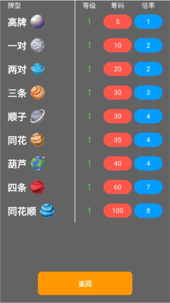 每种牌型都有各自的筹码和倍率,两者相乘即为最终伤害
