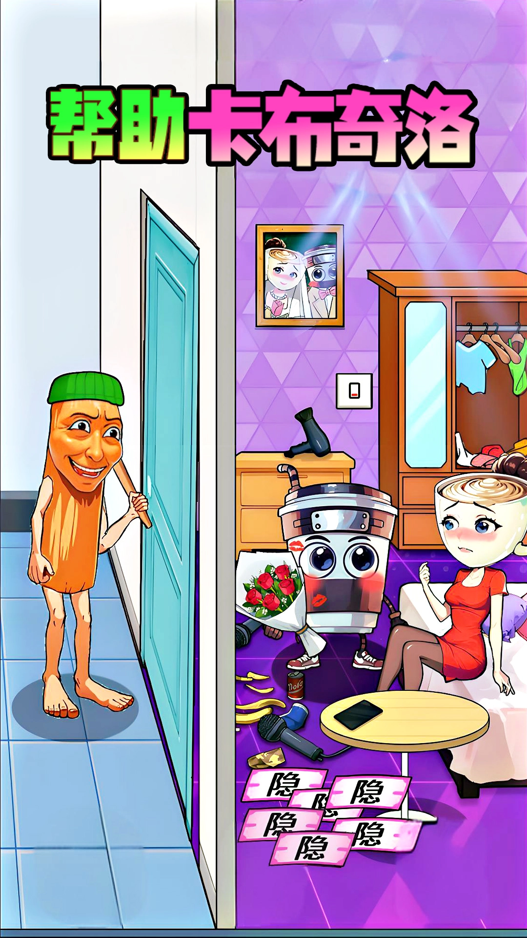《情侣来通关》是一款创意十足又趣味满满的休闲解谜游戏,故事围绕木棍人和咖啡公主的结婚纪念日展开,这对情侣在特殊日子里遭遇了一连串令人捧腹的小危机。原本带着鲜花满心欢喜赴约的木棍人,没想到咖啡公主的房间里竟藏着不少不请自来的客人。玩家需要大开脑洞,用巧妙的方式帮公主把这些意外访客藏起来,别让一场浪漫约会变成尴尬的“灾难现场”。游戏里每个关卡都藏着出人意料的解决办法,既考验反应速度,也超挑战你的奇思妙想哦!