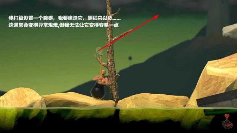 刚进入游戏时,玩家需要操控一个下半身呈圆罐状的角色,手持铁锤,在山石林立的环境中寻找首个可支撑的点,开启一段充满挑战的攀爬历程。