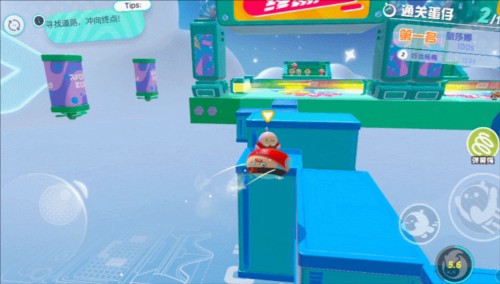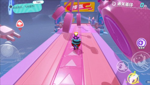 另外,游戏里视角的切换也会为蛋仔们带来全然不同的体验呢~这个模式的难点在于避开障碍,不管是升降的挡板,还是持续滚落的球体,都在考验蛋仔们的操作技巧~大家一定要提高警惕,顺着指示牌通关的时候,可别被它们撞下台去!