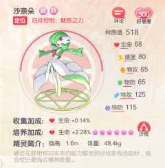 沙奈朵适合在对手精灵攻击特别高的情况下使用,它能魅惑对手使其协助攻击,从而达到自保的目的,不过当对方防御极高且进入消耗战时就派不上用场了。另外,在魔灵施加通感、暴飞龙施加撕裂这类情况时,也可以让沙奈朵去魅惑对手。