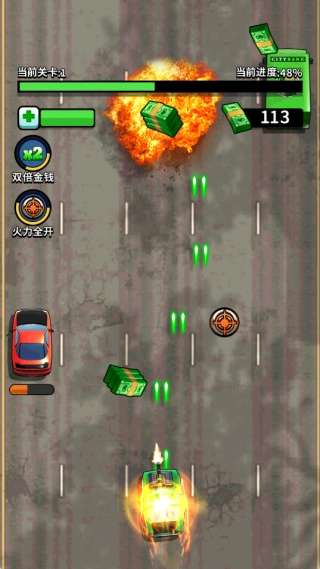 在行驶过程中做到攻防兼备,发起进攻时持续保持火力压制的态势,进行防守时则依靠灵活走位来躲避敌方的攻击,并且在进攻与防守的转换之间精准把控闯关节奏。