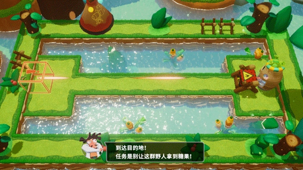 将金币拖到路上,布置陷阱,将野人弹到河里去
