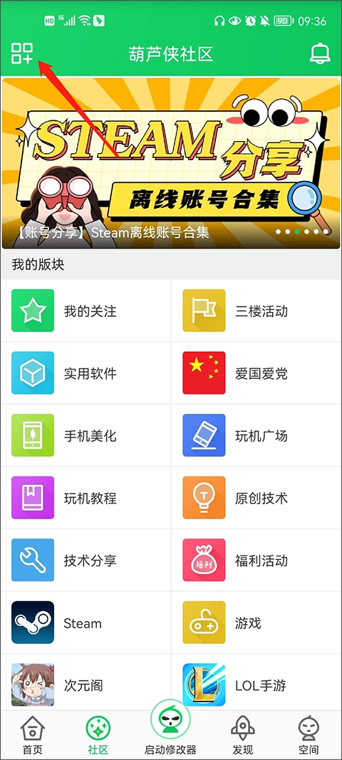 进入葫芦侠,在下方点击社区模块;
