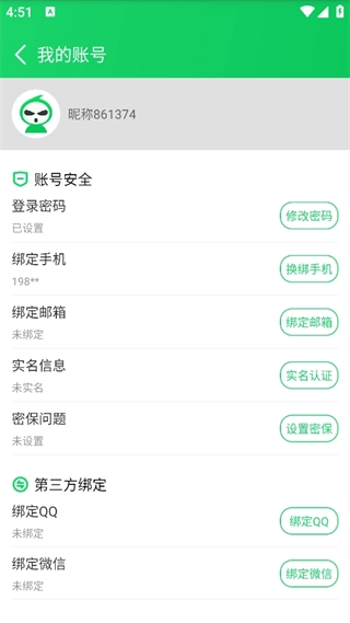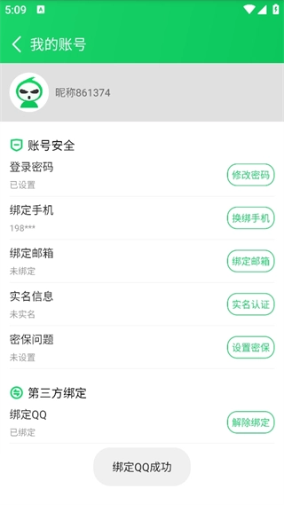 点击账号与安全,选择绑定QQ。