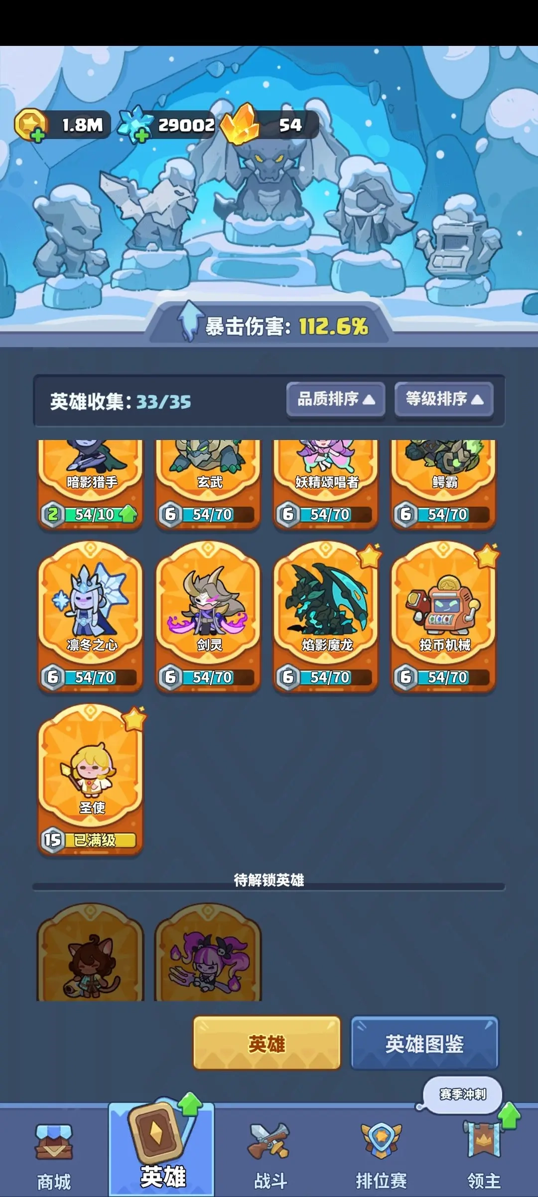 新手想顺利度过普通和困难模式的前期,一定要优先培养鳄鱼(鳄霸),直接拉到15级绝对不亏。虽然后期排位和噩梦模式它派不上用场,但等你能自己打噩梦、能打高端排位时,天使和猫咪的等级自然也练起来了。选鳄鱼过渡前期,主要是因为不管推主线还是普通困难模式自己打,它的稳定性都特别高,不像天使那样容易让人心态崩。