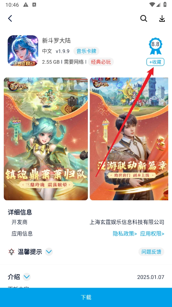 进入游戏详情页,点击右边"收藏"按钮即可。