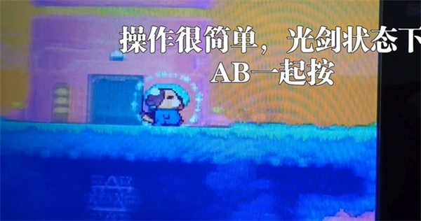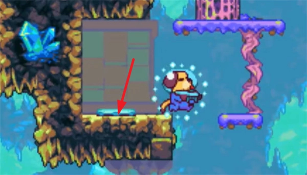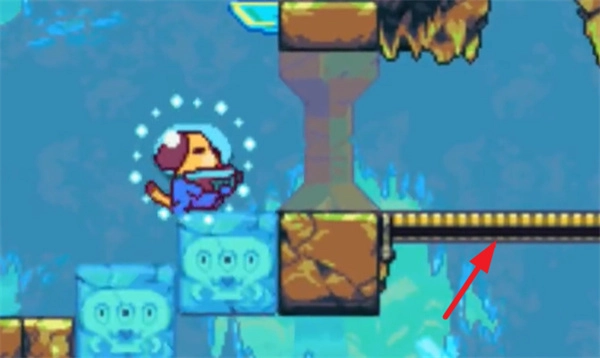 直接跳过去的话,前面会有尖刺,得先落在中间那块地方,然后再跳过去。