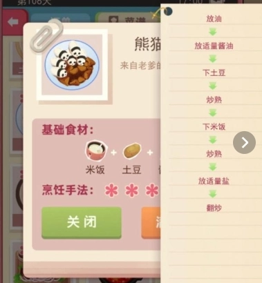 “熊猫的菜”是一道造型萌趣、余味悠长的菜品,它的基础食材由米饭、土豆和酱油构成。