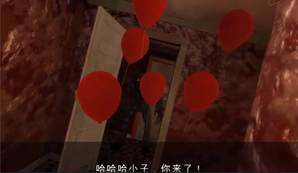 上楼点击气球会触发一段剧情,小丑随之出现,同时还飘出了大量气球。