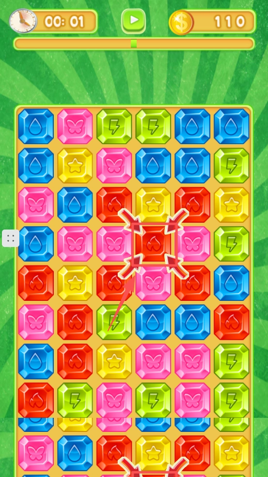通过消除操作,找出并点击三个或三个以上颜色相同的珠宝,以此达成消除目标。
