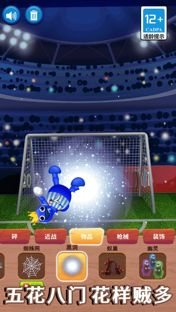用手指在屏幕上滑动,把武器和炸弹都扔给小蓝人,随着进一步的探索,玩家能够解锁更多的道具与玩法。