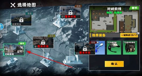 在地图选择界面选定对应难度的地图,确认推荐装备后点击确认按钮,即可进入相应的战场场景开启冒险之旅。