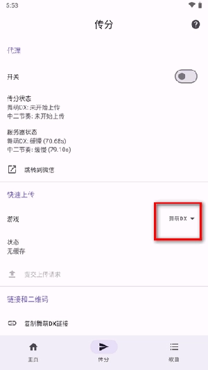 点击进入"传分"板块,选择游戏。