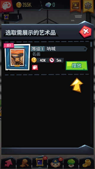 这是一个能让玩家自由布置的艺术馆模拟玩法,通过摆放艺术品来吸引更多顾客。