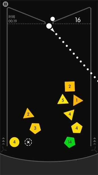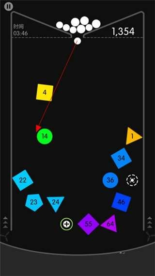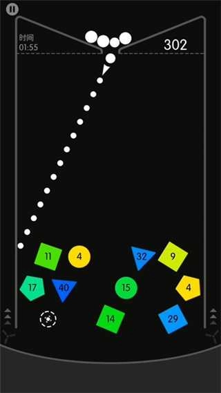 在这里,你会在黑色背景下发射白色小球,击碎各种形状的积木,以此来获取更高的分数。
