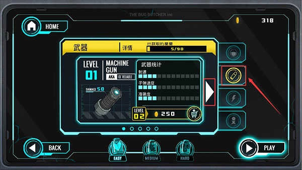 强化结束后,你可以选择下方的难度,接着点击PLAY就能开启新的一局游戏,难度共分三个等级,由低到高依次是EASY简单、MEDIUM中等、HARD困难。