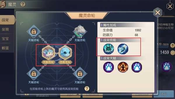 每个战宠都具备独特的特色技能,记得在魔灵命轮里将你心仪的魔灵安置到技能命轮上,如此一来,你在战斗过程中就能额外使用这两个技能了。