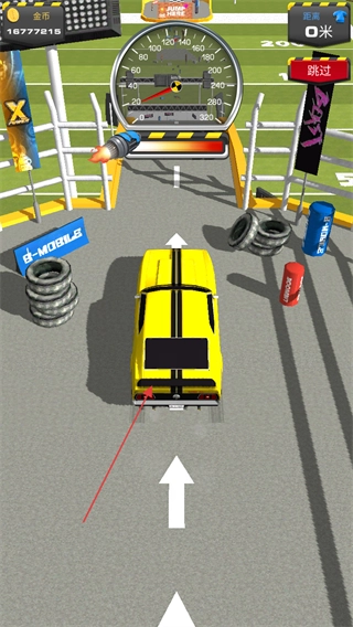 操控黄色车辆于起点待命,借助加速装置发动,顺着赛道开启冲刺,累积行驶距离。