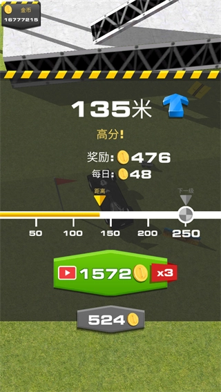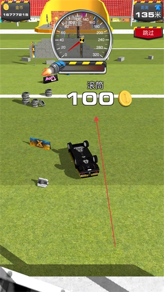 触发滚筒100的效果后,你将获得金币奖励,同时冲刺到135米处,并持续积累行进距离。