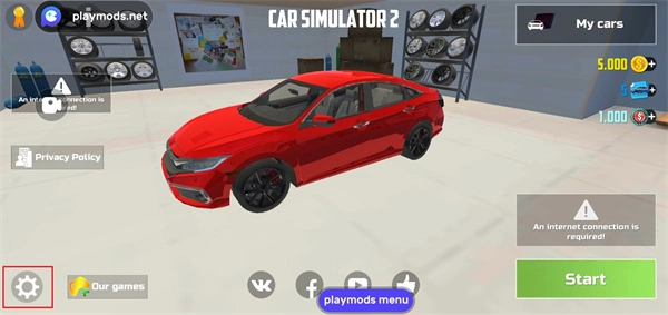 首先打开汽车模拟器2的最新版本,接着点击界面左下角的设置按钮。