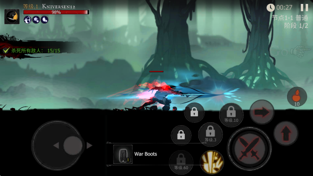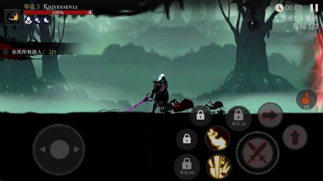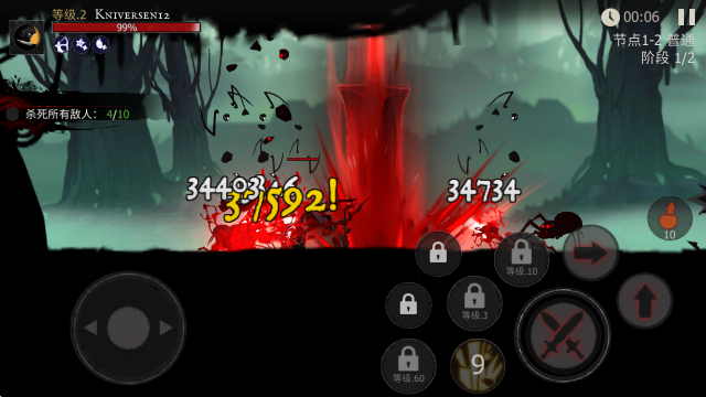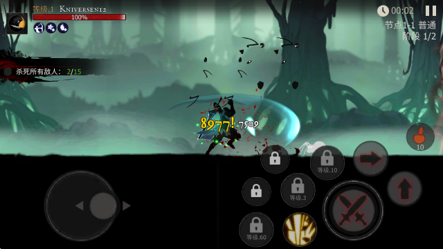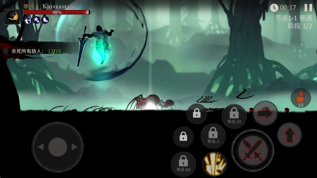 进入关卡后,拖动左侧摇杆操控角色移动,当靠近敌人时就能发起攻击。