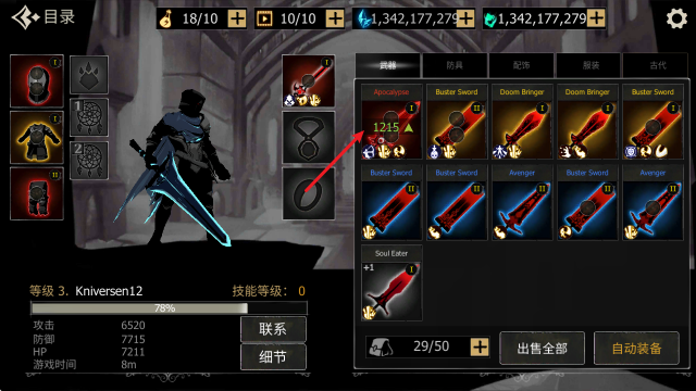 然后在装备界面自由搭配,如图所示,能提升战斗力的装备会显示出来。