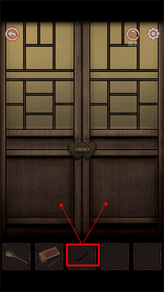 点击左边的房子,用木炭涂在门上,获得开门的线索;