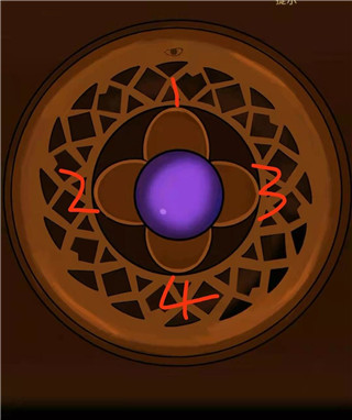 第三章关于这个盒子,需要观察面具的眼睛,同时留意盒子上我画红圈处的珠子颜色。如果你第一次看到的珠子是绿色,就要查看绿色面具的眼珠子是朝上还是朝下。要是看到眼珠子朝上,就按盒子上面的花瓣——这里得看花心的颜色。按了朝上的花瓣后,花心会变色,所以玩的时候最好截图并做笔记记录下来。