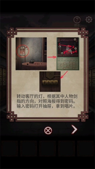 进入中间屋子,根据提示打开抽屉拿到唱片;