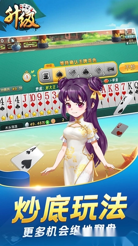 边锋升级手机版客户端是一款地道的拖拉机升级扑克游戏,炒底、80分真人对战、双升等热门玩法,趣味性拉满,卡通画风精致,玩法体验超带感,快来免费安装吧!