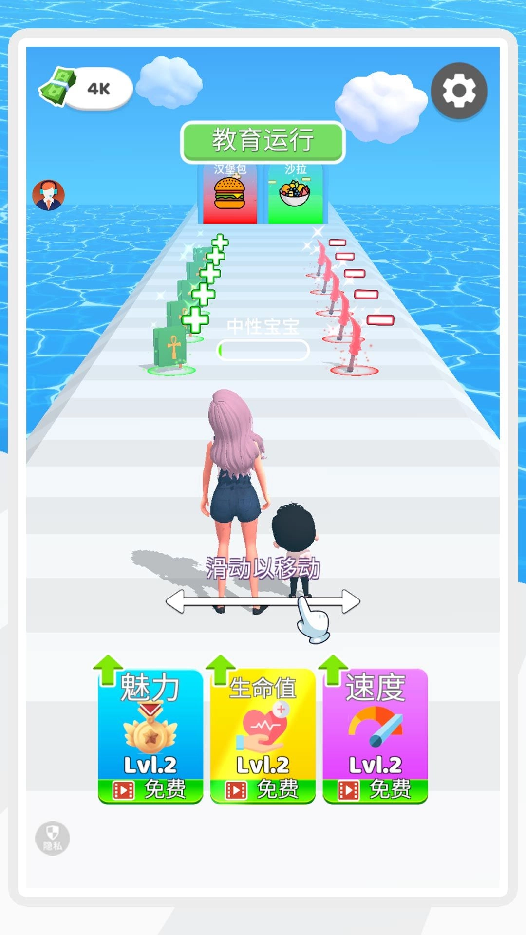 2、通过跑酷获取的收益,用来升级“魅力”“生命值”“速度”这些属性,以此增强角色在后续关卡里的生存与突破能力,从而应对更复杂的挑战。