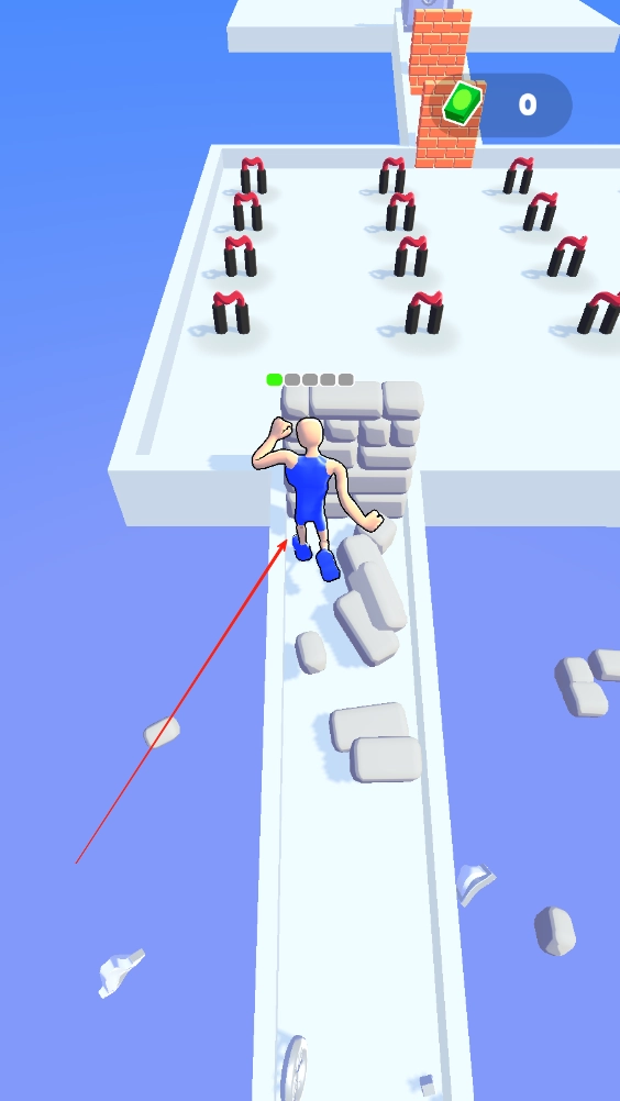 3、临近终点时,面对难度较大的最后一道墙壁,借助之前积攒的强劲力量全力冲破,就能顺利通过关卡。
