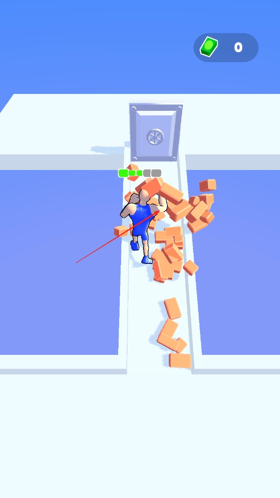 1、身形瘦弱的角色拾取地面上的健身器材进行锻炼,当角色头顶的进度条达到满格状态时,便能击碎前方障碍,开启下一个环节的挑战。