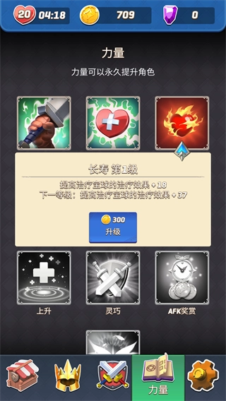 5、使用积攒的金币可以用来升级角色的力量。
