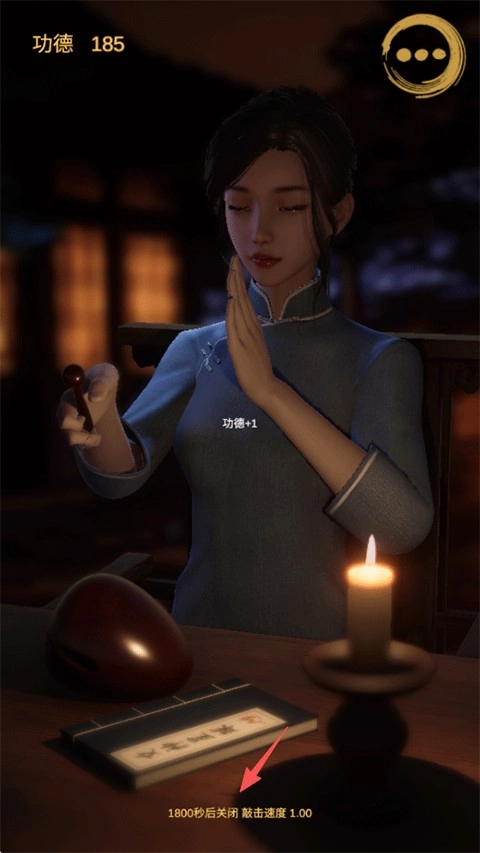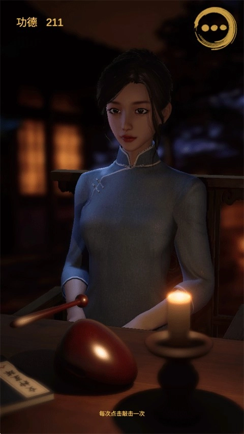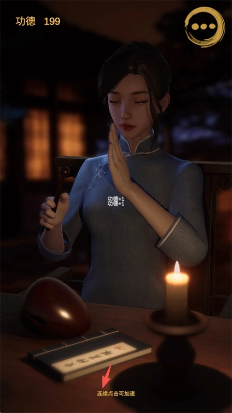 2、与女施主一同敲击木鱼,涤荡邪恶意念,求得内心的平和,频繁点击屏幕,让功德的积累更为迅速。