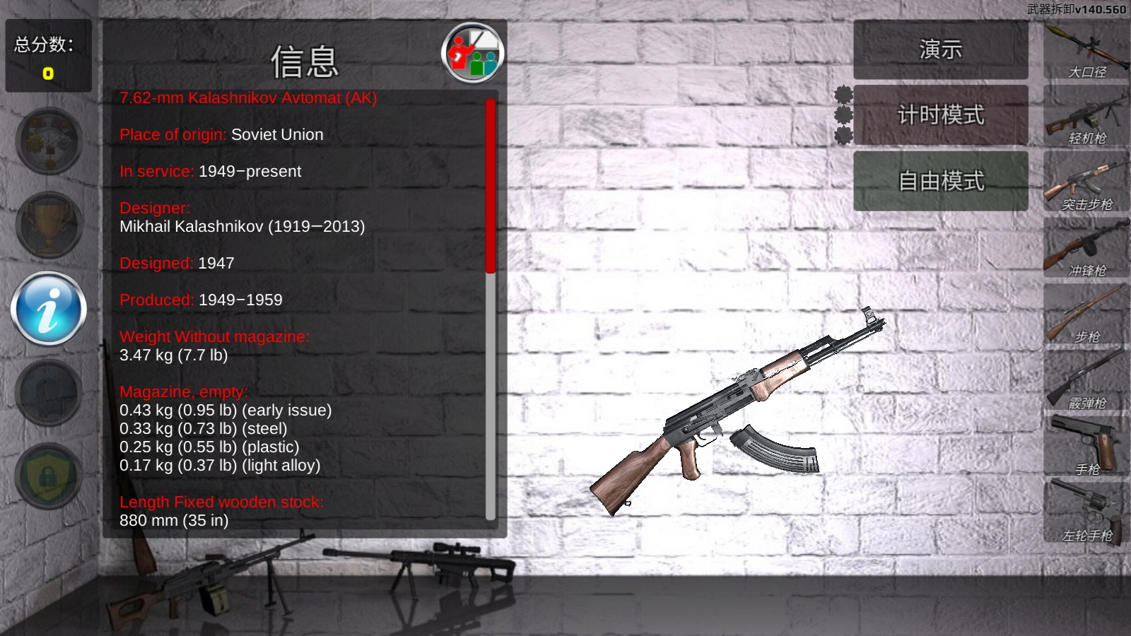 3、等玩家熟练掌握枪械操作后,还能去挑战紧张刺激的计时模式,试试自己组装或拆卸枪械得花多久时间!