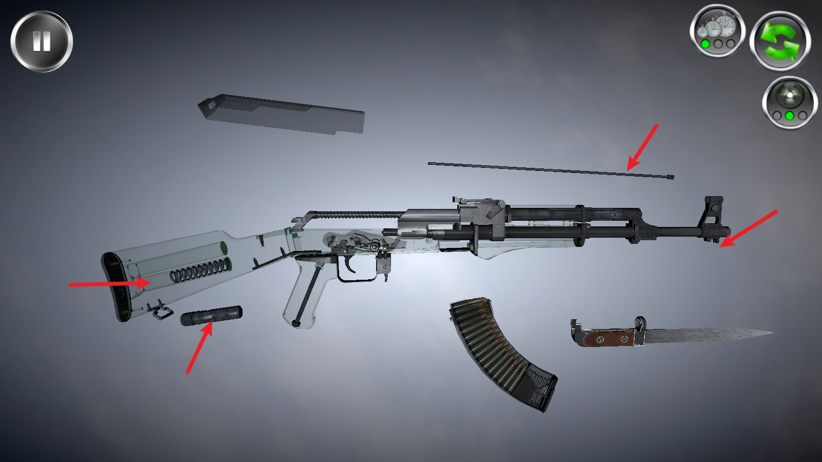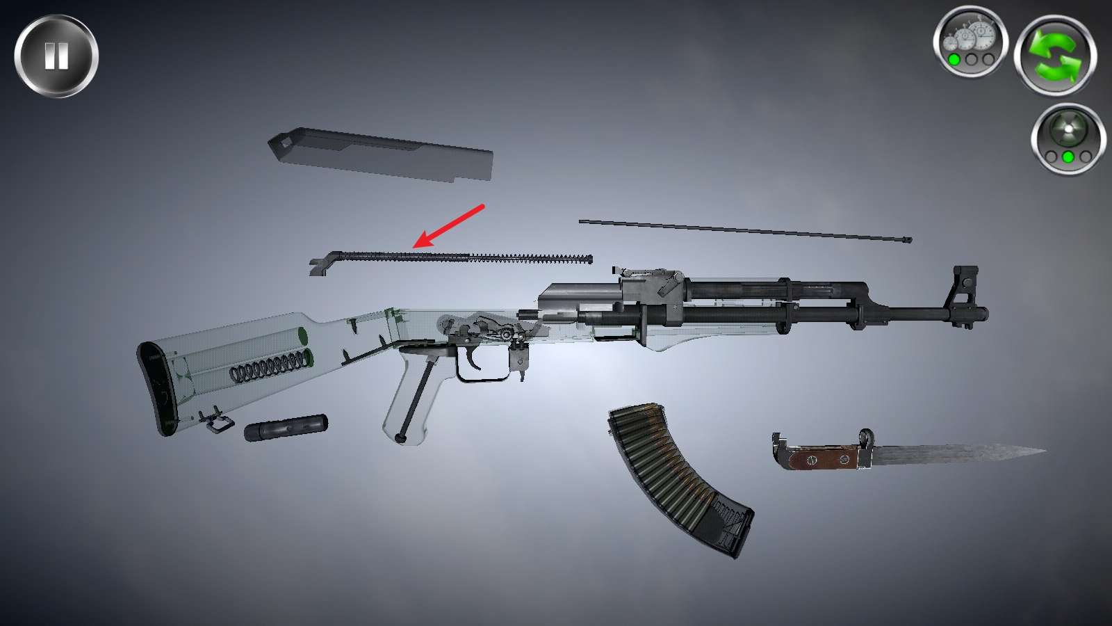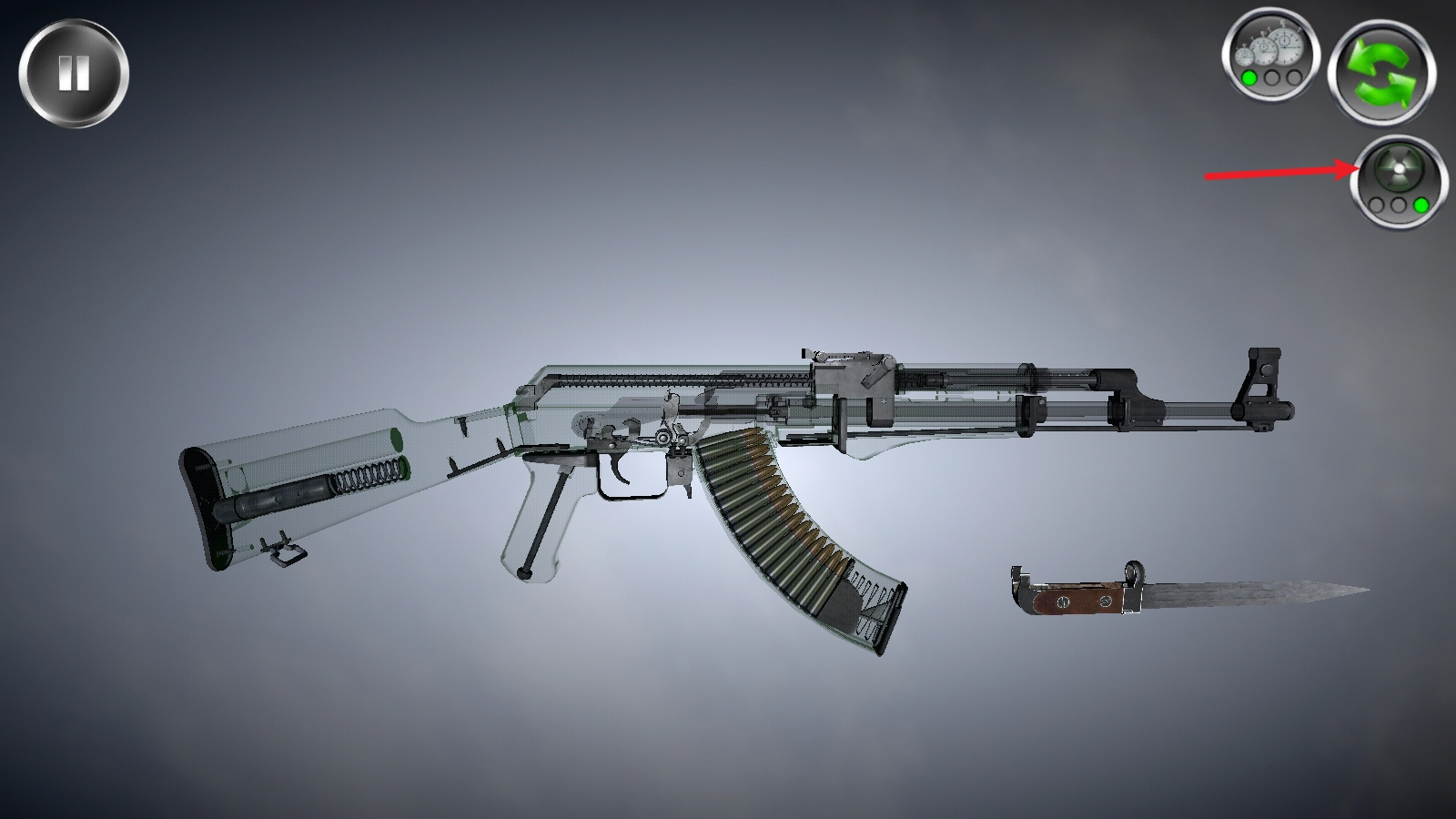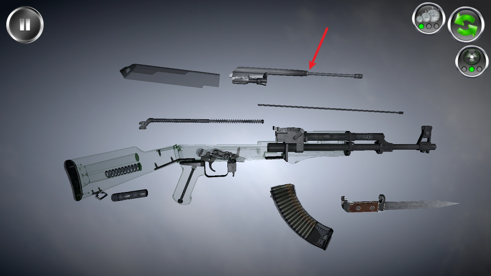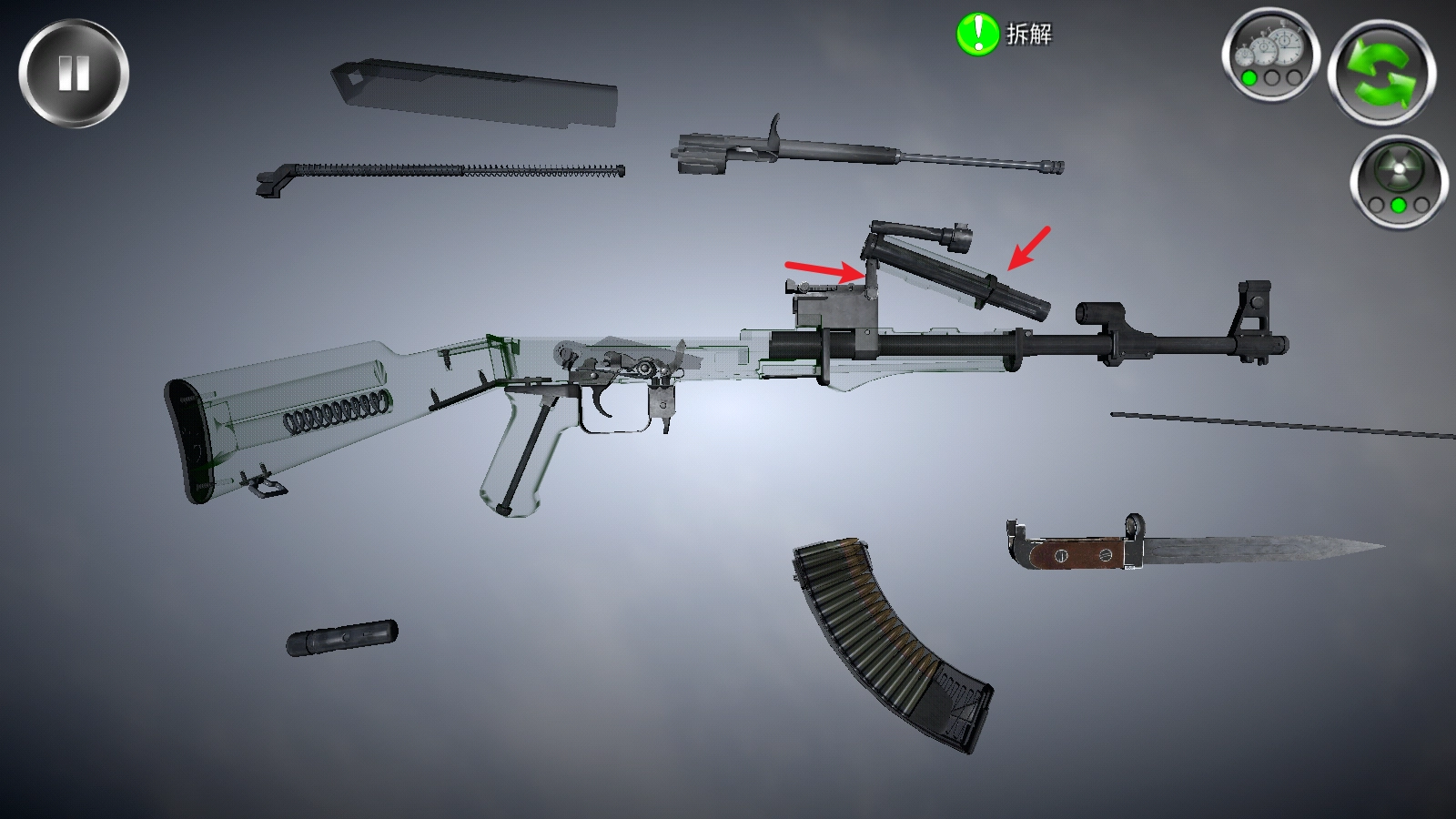 点击右上角的这个按钮,就能透视枪械内部的构造,便于你开展拆卸操作。