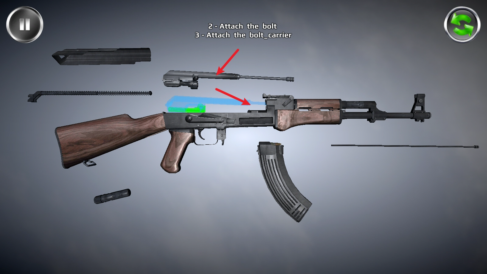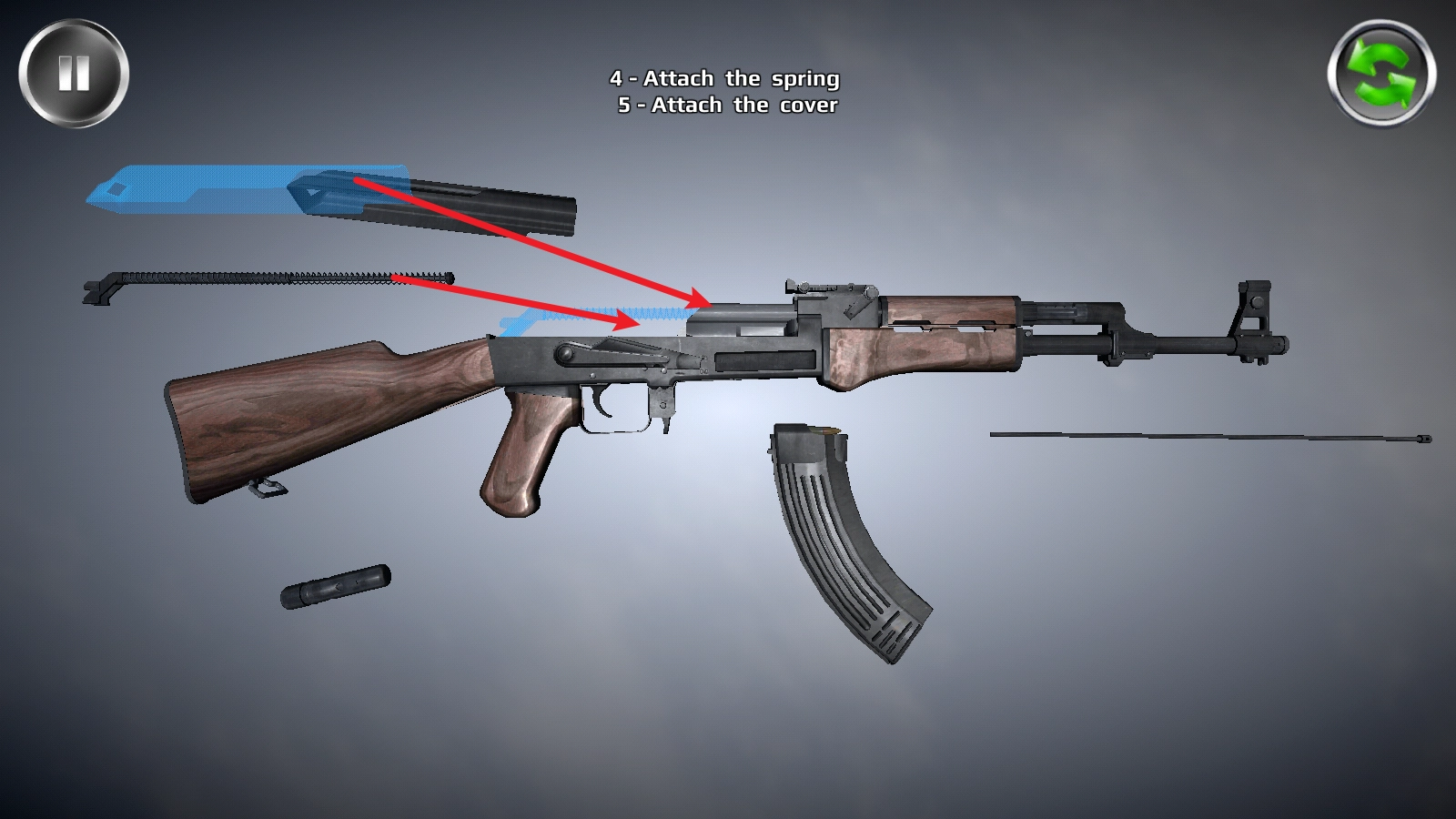 2、要是不清楚如何拆卸或组装枪支,可查看游戏内的演示操作,它会一步步教你,十分贴心。