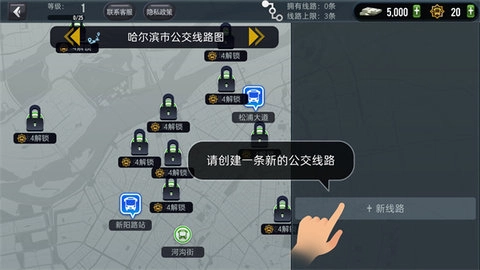 3、处理好自己的公交线路后,我们返回主界面进入运营模式,在这个界面里创建一条新的线路。