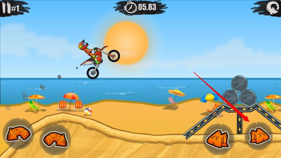 1、玩家要操控摩托车在横版关卡里通过加速或刹车来维持平衡,穿越带刺冰块、齿轮这类障碍。