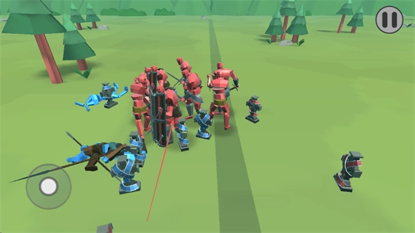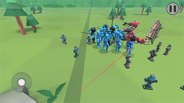 2、在草地战场上,指挥蓝色兵种与红色兵种展开近距离战斗,灵活调整阵型,借助不同兵种的属性特点来作战。