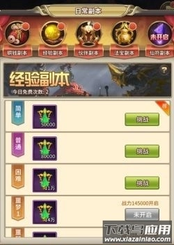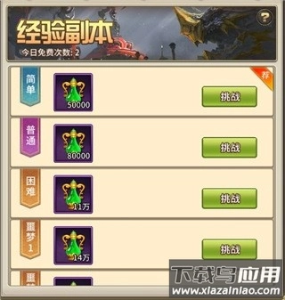 2、每日挑战经验副本,难度提升则经验增加;