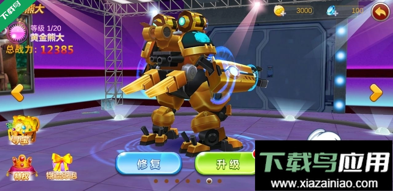 2、坦克熊大:属于A级机甲,需五十钻石购买,初始总战力1662,攻击835,耐久820;拥有较高的攻击与耐久,适合追求输出的玩家;