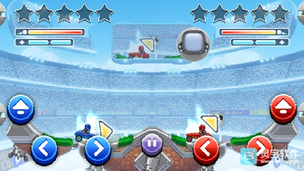 3、对局中采用六局三胜机制,我们需要控制赛车,将足球撞进对手的门框内,率先得分为三的一方获得胜利
