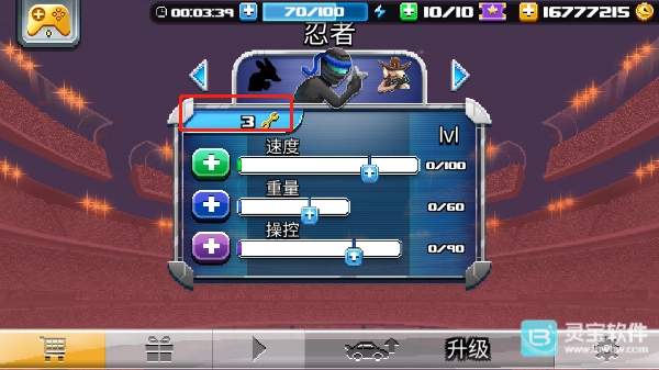 6、而升级点可在下图所示位置,提升角色速度、重量、操控等各项属性
