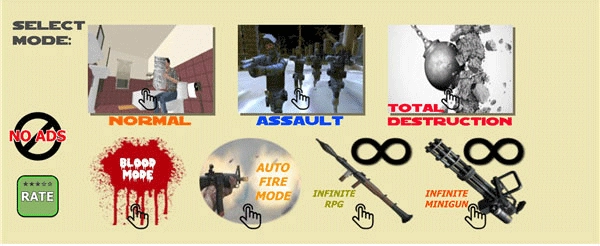普通模式(NORMAL):自由破坏场景,无时间或敌人压力,适合放松解压。