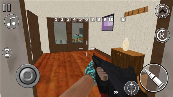 游戏以第一人称视角呈现,玩家操控老奶奶使用武器(如枪械、棍棒)破坏场景中的物体(家具、建筑结构等),通过物理引擎实现真实破坏效果(如碎片飞溅、物体坍塌)。
