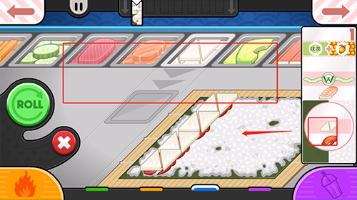 然后点击下方的海苔片来制作寿司,好让顾客品尝到美味的寿司。