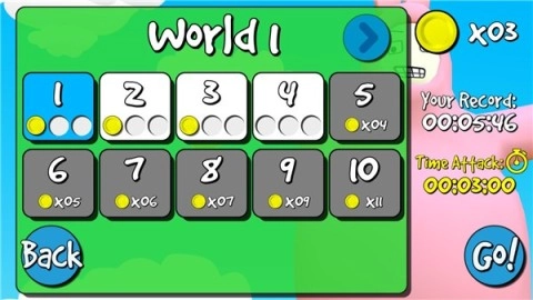 这款游戏设有大量关卡,需按顺序逐个解锁,解锁条件是完成当前关卡。随着关卡推进,通关所需的金币数量会逐步提升,若想顺利通过后续关卡,建议尽量在每一关都达成最高评价标准。